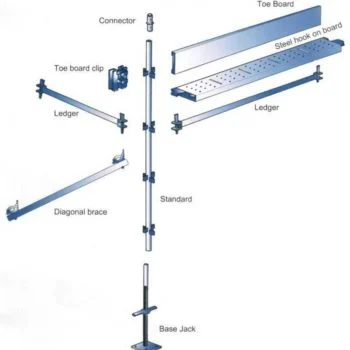 - A base jack or plate which is a load-bearing base for the scaffold.